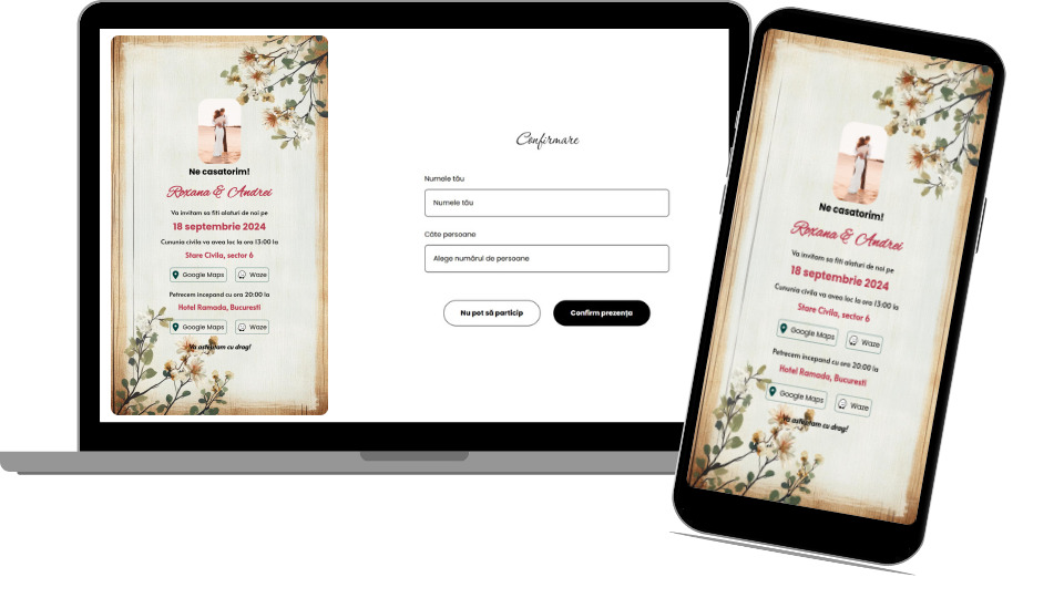 Față de invitațiile clasice, tipărite, cele online elimină costurile de print, timpul de livrare și riscul pierderii informațiilor importante. În plus, ele pot fi actualizate instant, fără bătăi de cap, în cazul în care apar modificări de program sau locație.